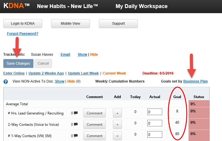 - Goals set by Business Plan - This means that you or your manager/coach have activated a KDNA Business Plan. In this case, the goals can only be driven from the Business Plan and cannot be changed on the Landing Page.
